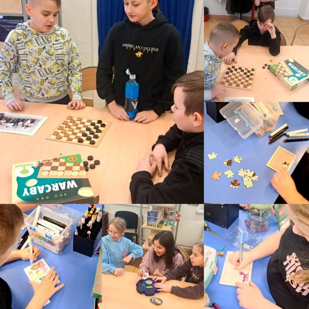 Z okazji Dnia Puzzli i Łamigłówek w naszej bibliotece oraz świetlicy szkolnej odbyły się zajęcia pełne logicznych wyzwań i dobrej zabawy. Uczniowie mieli okazję zmierzyć się z różnorodnymi puzzlami, grami oraz zagadkami logicznymi, dostosowanymi do ich wieku i możliwości.