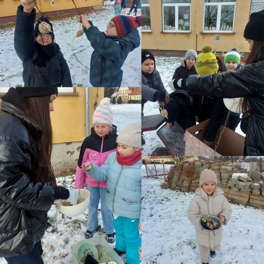 W ramach działań proekologicznych uczniowie klasy IIA przygotowali własnoręcznie przysmaki dla ptaków.