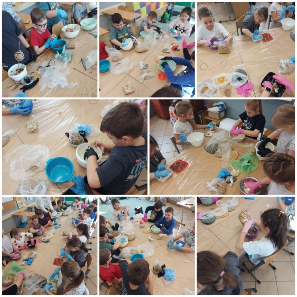 Wykonywanie przysmaków było nie tylko cenną lekcją wrażliwości na potrzeby przyrody, ale także doskonałym ćwiczeniem sprawności manualnej oraz motoryki małej.