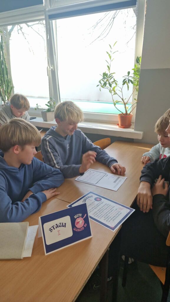 Z okazji Dnia Języka Ojczystego uczniowie klas V i VI uczestniczyli w zajęciach w formie stacji językowych. Podczas pracy w grupach wykonywali różnorodne zadania związane z ortografią, frazeologią, częściami mowy oraz poprawnością językową.
