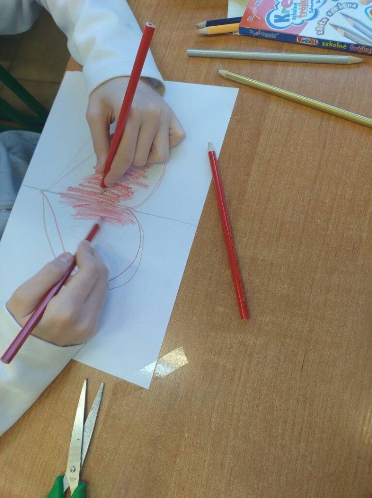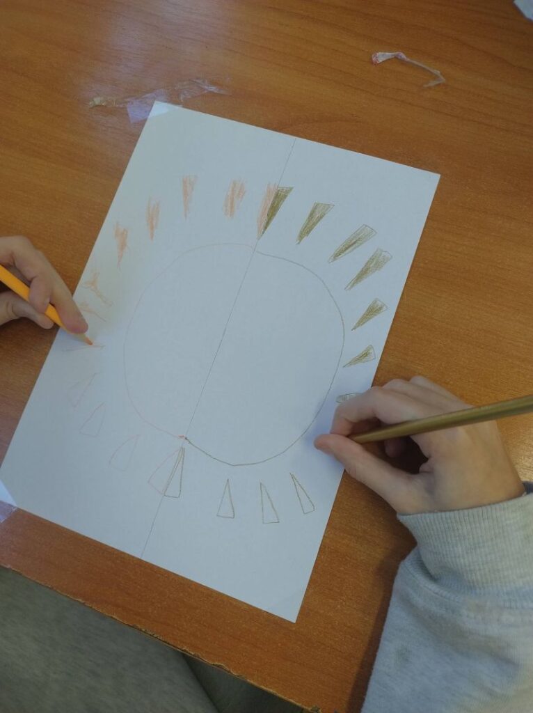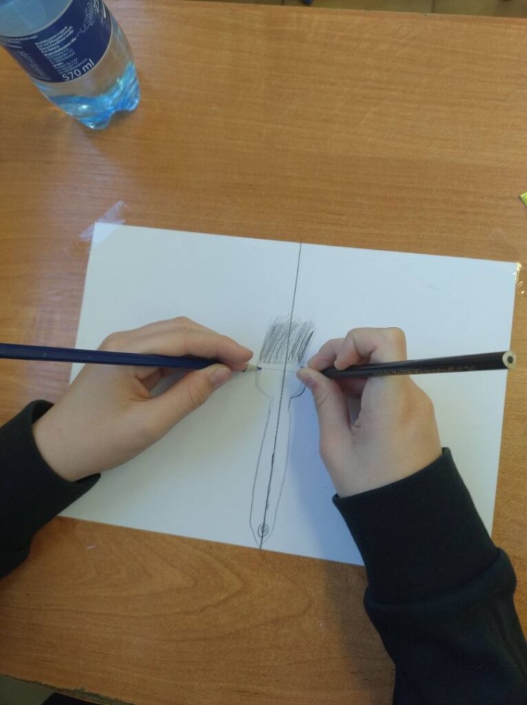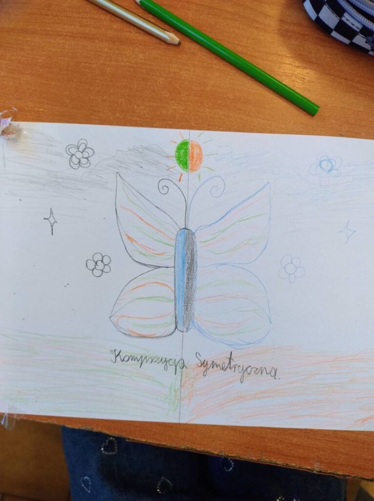 Podczas ostatnich zajęć uczniowie poznawali zasady kompozycji symetrycznej w nietypowy sposób. Ich zadaniem było rysowanie obiema rękami jednocześnie – co wymagało nie tylko skupienia, ale także świetnej koordynacji ruchowej i wyobraźni.