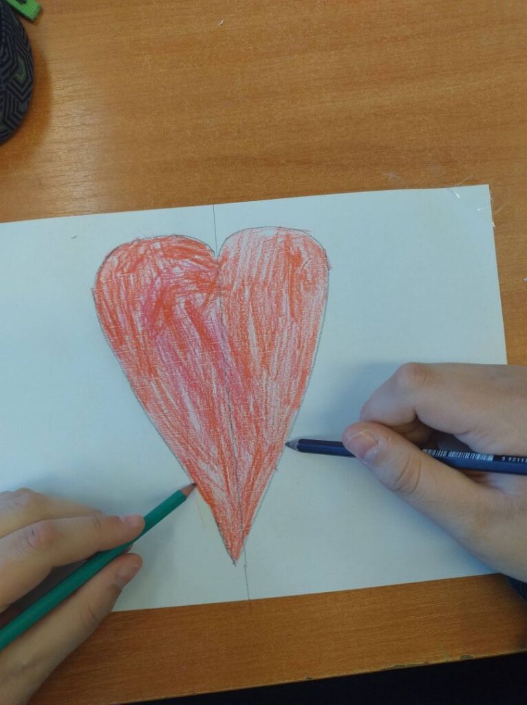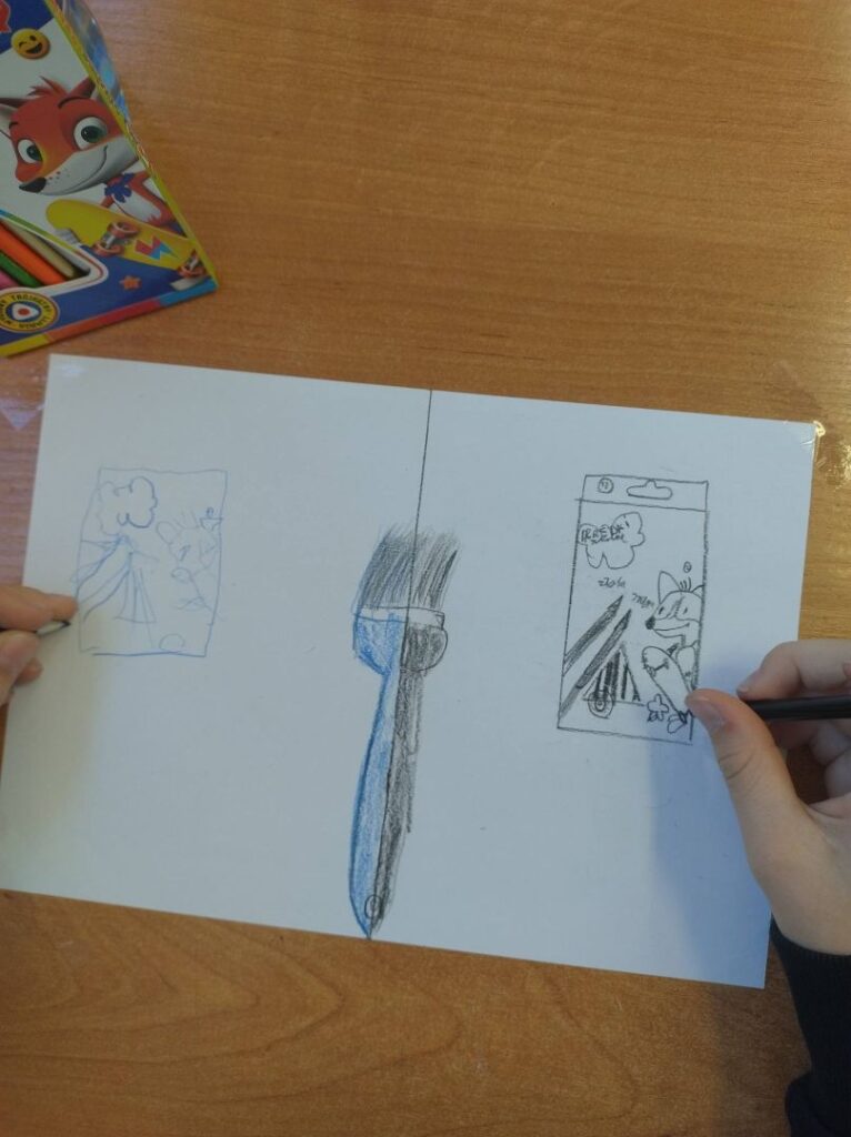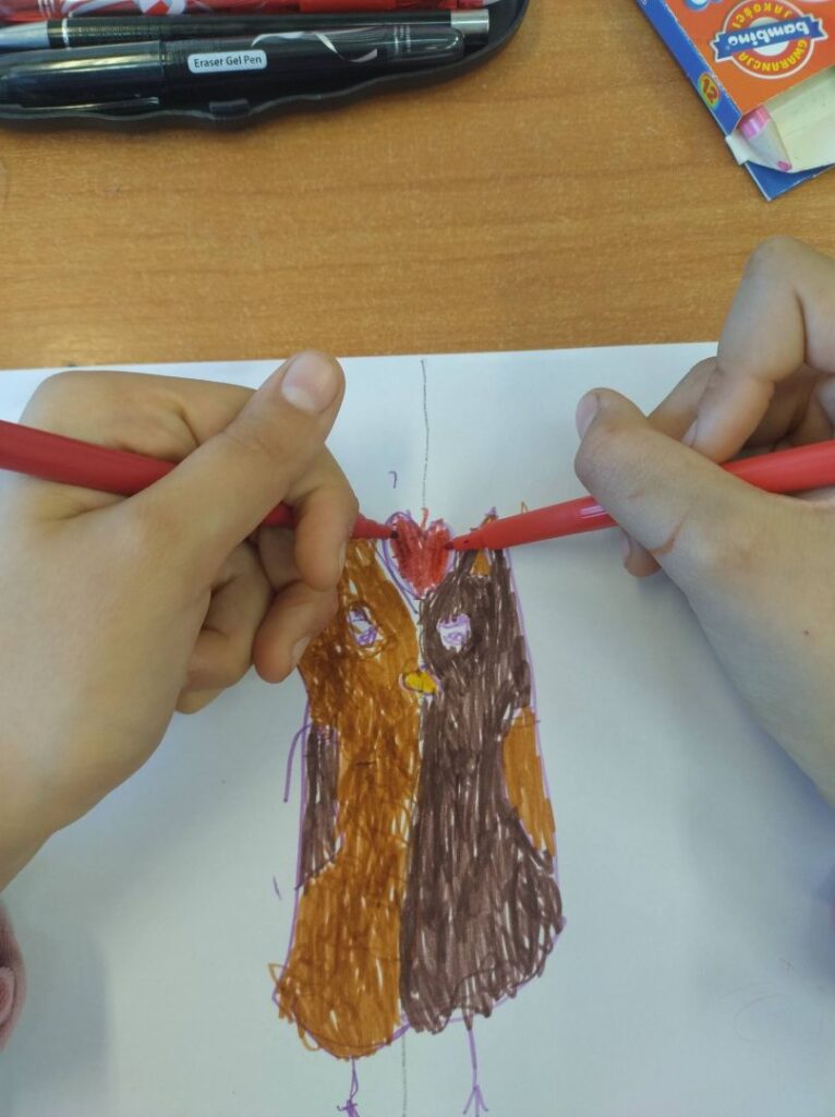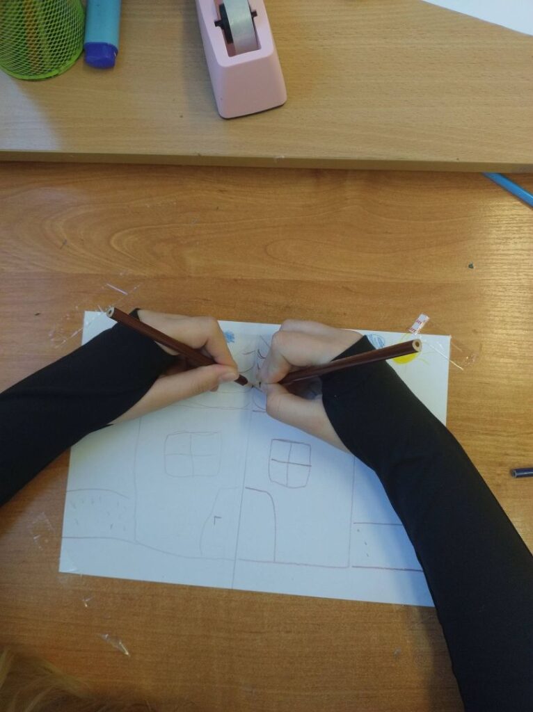 Podczas ostatnich zajęć uczniowie poznawali zasady kompozycji symetrycznej w nietypowy sposób. Ich zadaniem było rysowanie obiema rękami jednocześnie – co wymagało nie tylko skupienia, ale także świetnej koordynacji ruchowej i wyobraźni.