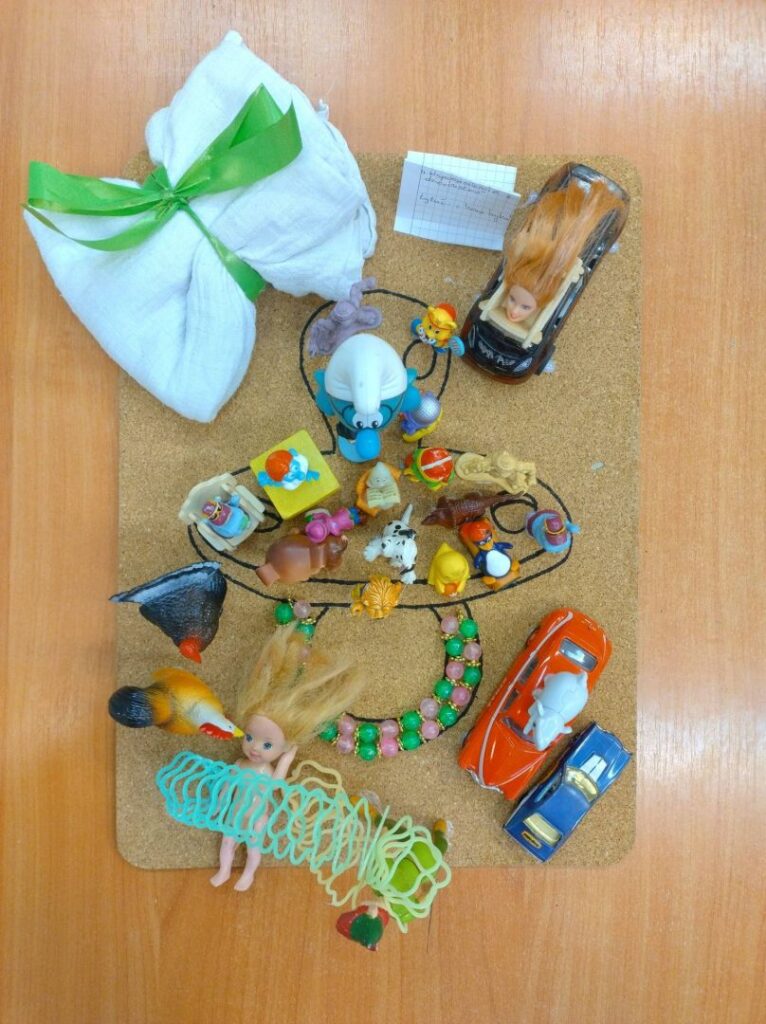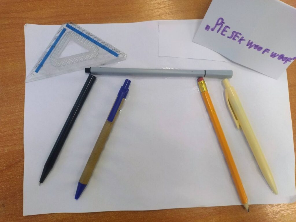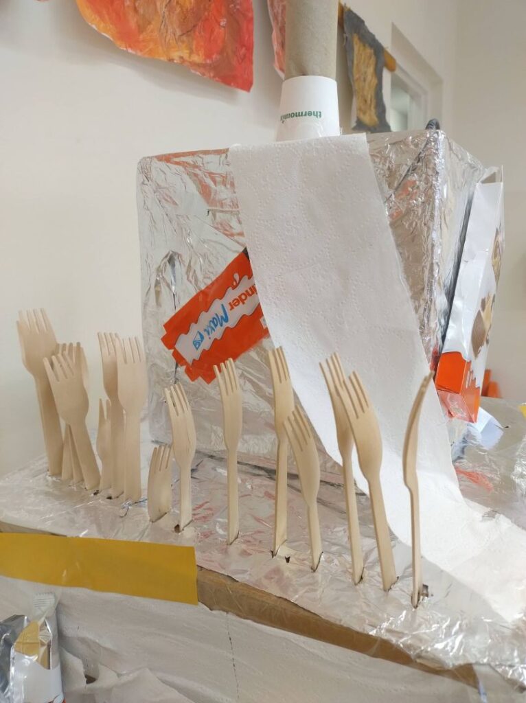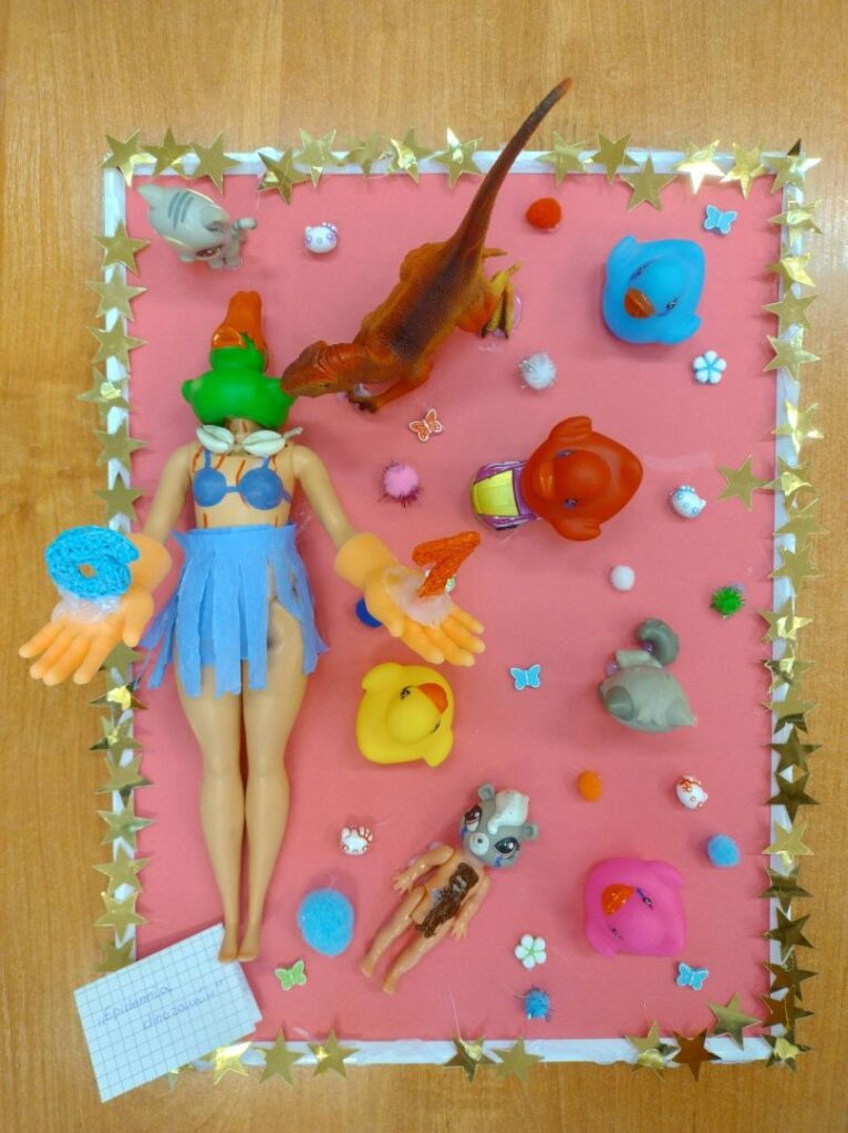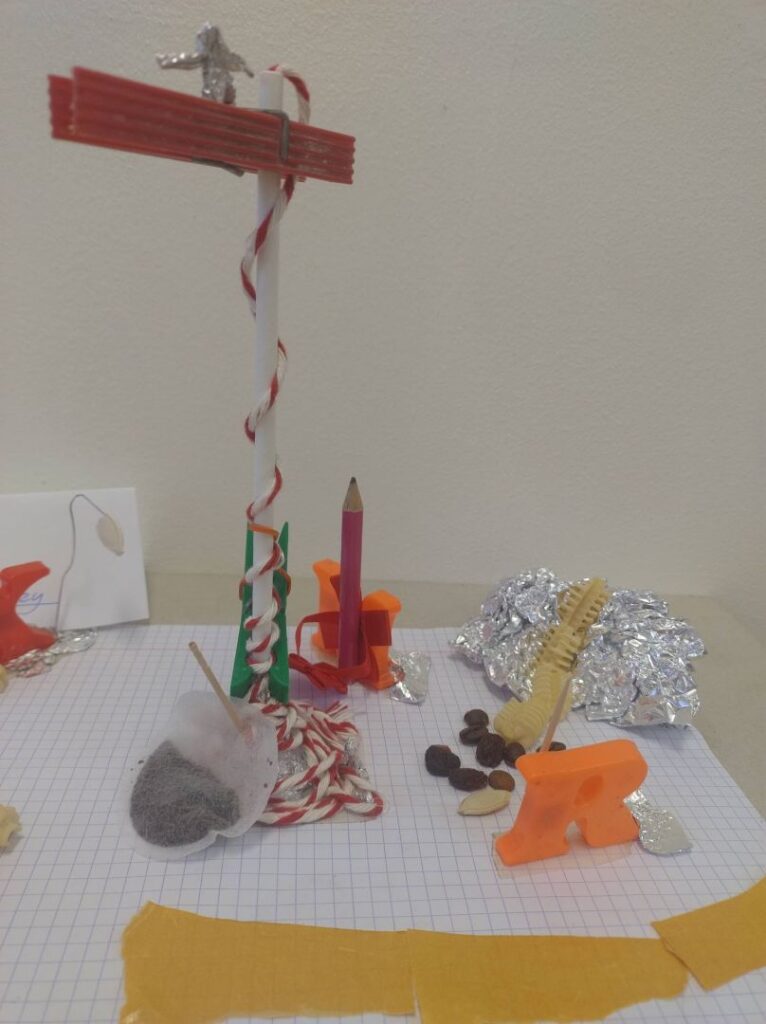 Zadaniem uczniów było wykonanie asamblażu, przedstawiającego jeden z czterech tematów i nadanie tytułu swojej pracy. Po skończonym procesie twórczym, każda grupa prezentowała swoje dzieło. Młodzi artyści opowiadali historie związane ze swoimi asamblażami, odpowiadali na pytania dotyczące wyboru konkretnych materiałów i połączeń. Chętnie mówili o uczuciach towarzyszących im przy tworzeniu, jak również o trudnościach, które napotykali i jak sobie z nimi poradzili.